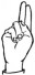 На ћирилици написано ЈУГОМИР ВАСИЛИЈЕВИЋ састоји се из 18 слова [?]. Исписано ћириличном једноручном азбуком за глувонеме: